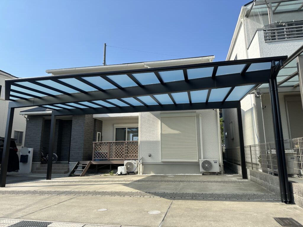 京都伏見区にて3台用変形カーポート工事を行いました。